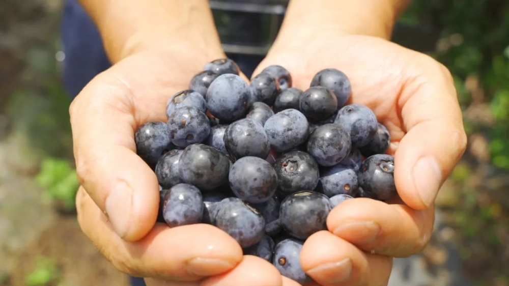 安定镇白坪村的玉兰湾蓝莓基地也喜迎丰收,只见一颗颗色泽浓郁的蓝莓果圆润饱满,簇拥成串,宛如小铃铛挂满了枝头。