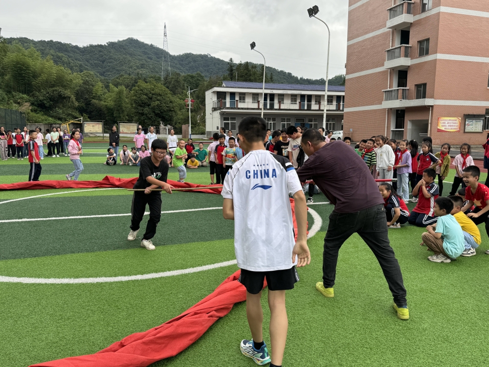 演练开始前,校长凌立文带领全体学生对防溺水安全知识进行了回顾。随后,教师邱有根用道具在操场中央圈出一个“大池塘”,邀请了防溺水重点学生上台扮演塘边玩耍的学生。一个学生扮演落水者,另一个扮演跳水施救者,最后,两人双双“溺水”,并大声呼救!校长现场纠正错误的施救方法,邱有根向学生演示了正确的施救方法。通过防溺水情境的创设,孩子们身临其境,深刻认识到溺水事故的严重后果。