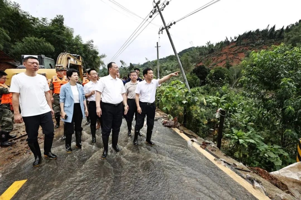 ▲7月2日,省委副书记、省长毛伟明在岳阳市平江县童市镇芭蕉村检查受灾情况。