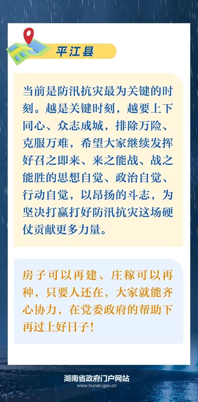 受持续强降雨影响,岳阳多地遭遇历史最强洪水袭击,受灾严重。7月2日,省委副书记、省长毛伟明紧急赶赴我县指导检查防汛抗灾工作。他强调,要深入贯彻习近平总书记关于防汛抗旱工作的重要指示精神,始终树牢“人民至上、生命至上、安全第一”理念,全面布防、全面发动、全力以赴,上下同心、尽锐出战、确保胜利,坚决打好打赢打胜防汛抗灾这场硬仗。