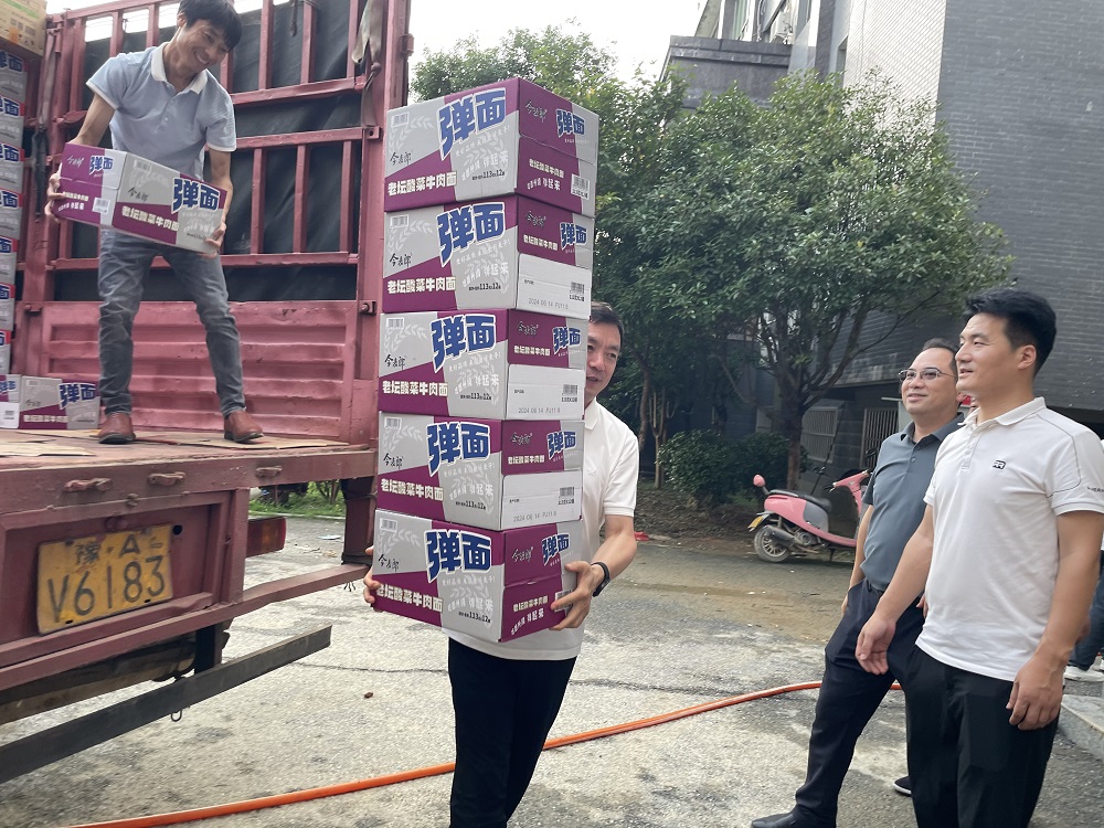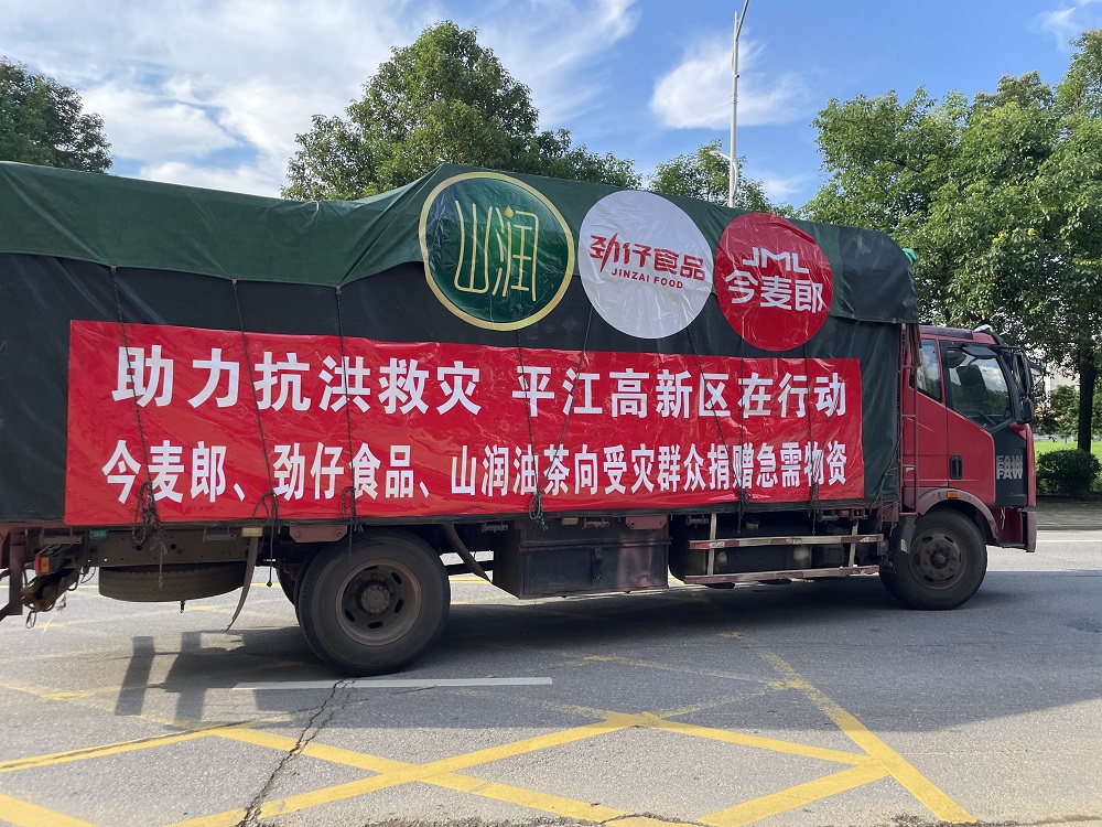 7月2日下午,一辆满载着今麦郎方便面、劲仔小鱼仔、山润山泉水等救援物资的大货车从平江高新区管委会出发,奔赴抗洪救灾前线,全力以赴打好防汛救灾攻坚战。