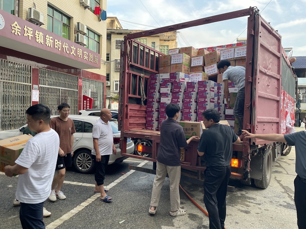 今麦郎面品(平江)有限公司率先响应,当即决定捐出1300箱方便面,总经理马晓辉决定和平江高新区工作人员一起将物资运往余坪镇、三阳乡等受灾较为严重的地区。随后,劲仔食品、山润油茶也纷纷响应,分别捐出3万余元的劲仔小鱼、6000余元的矿泉水,园区管委会也向受灾一线提供了部分雨靴、雨衣、手电筒等应急物资。