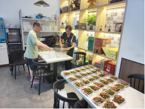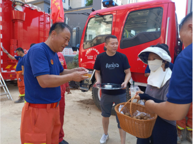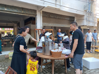 草草睡了两个多小时后,她将孩子交给亲戚,分别前往简青大众安置区、天岳广场、康乐村等地,为救援队和志愿者送上亲手制作的500余份凉粉和200个卤鸡蛋。