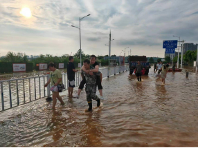 面对突如其来的洪涝灾害,志愿者们冲锋在前,投身抗洪救灾,社会各界火速驰援,大家手牵手并肩作战、心连心共渡难关,书写了一场场手足相亲的感人故事,刻画了一幕幕守望相助的暖心画面。