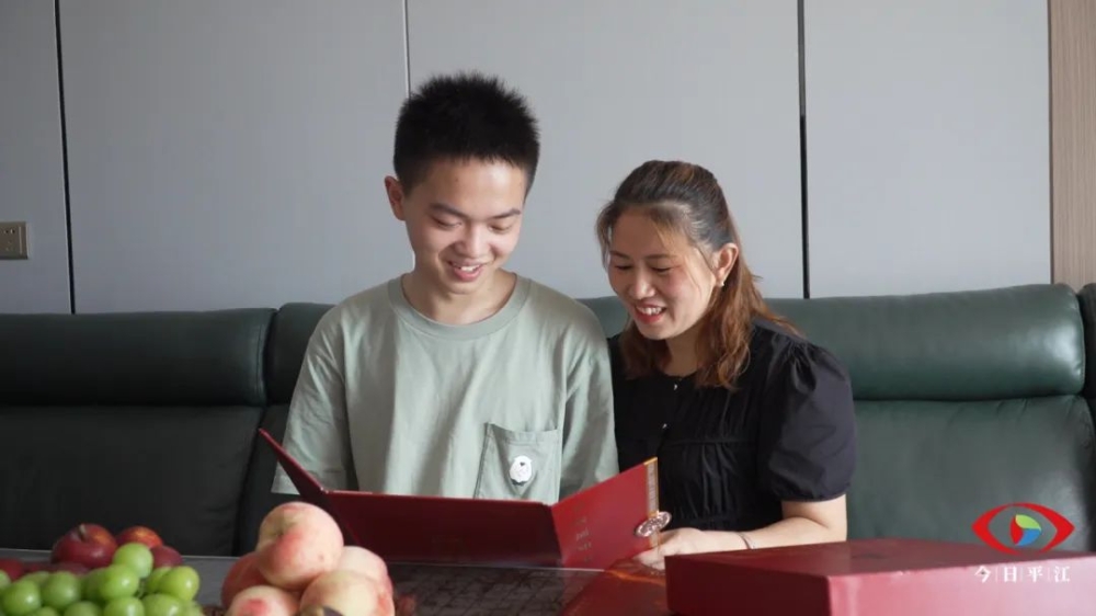 “你是文谭浩楠吗?请出示一下你的身份证、准考证。”当天下午,邮政投递员来到文谭浩楠家中,在核对信息无误后,投递员笑容满面地将录取通知书交到学生手中。文谭浩楠郑重地接过录取通知书,和妈妈一起打开邮件,两人脸上都洋溢着开心的笑容。
