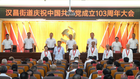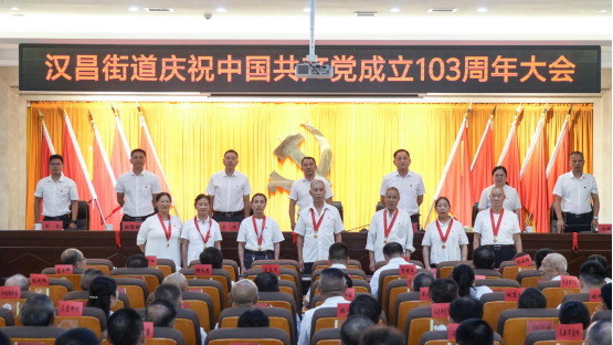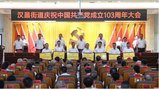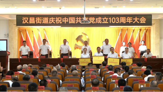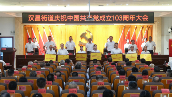 会议在庄严的国歌声中拉开帷幕。汉昌街道党工委副书记余峰宣读表彰通报,表彰了18个先进基层党组织、28名优秀党务工作者和90名群众身边好党员。