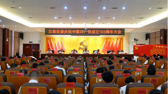 7月17日上午,汉昌街道在机关六楼召开庆祝中国共产党103周年大会,街道机关全体党员、驻村工作队、各社区(村)书记、副书记、机关离退休支部委员、两新和部门党组织负责人、“光荣在党50年”老党员、新发展党员等280余人参加会议。街道党工委副书记、办事处主任彭勇主持会议。