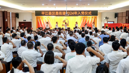 在党工委委员、纪工委书记余意的领誓下,与会新老党员面向鲜红的党旗,举起右手,集体进行庄严宣誓。