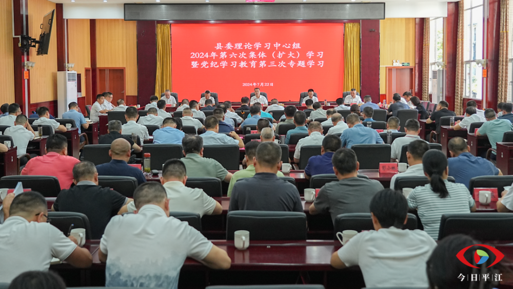 根据党纪学习教育工作安排,7月22日,县委警示教育会和县委理论学习中心组2024年第六次集体(扩大)学习暨党纪学习教育第三次专题学习在县委党校举行,学习贯彻习近平总书记关于全面加强党的纪律建设的重要论述精神,扎实开展以案说德、以案说纪、以案说法、以案说责,教育引导全县党员干部自觉学纪、知纪、明纪、守纪,进一步推动党纪学习教育走深走实。县委书记李勇主持会议并讲话。县委、县人大、县政府、县政协领导班子成员等参加会议。