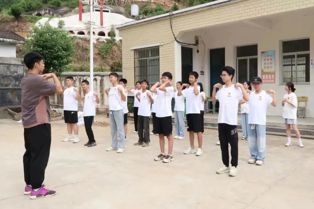 在宋塅村,学生团队们用专业知识为孩子们送上一堂公益课,为20余名学生讲解防性侵、防溺水、防交通事故等相关知识。在课堂上,结合专业优势,通过趣味抢答和游戏环节,在欢笑中,大学生们用宣讲筑起了“安全防线”,取得了良好的效果。