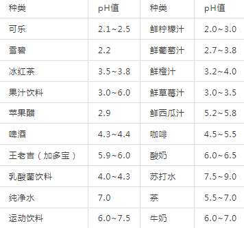 酸性饮料通常指pH值<4.5的饮料。夏日里大家喜欢的很多饮品,其实都属于酸性饮料。