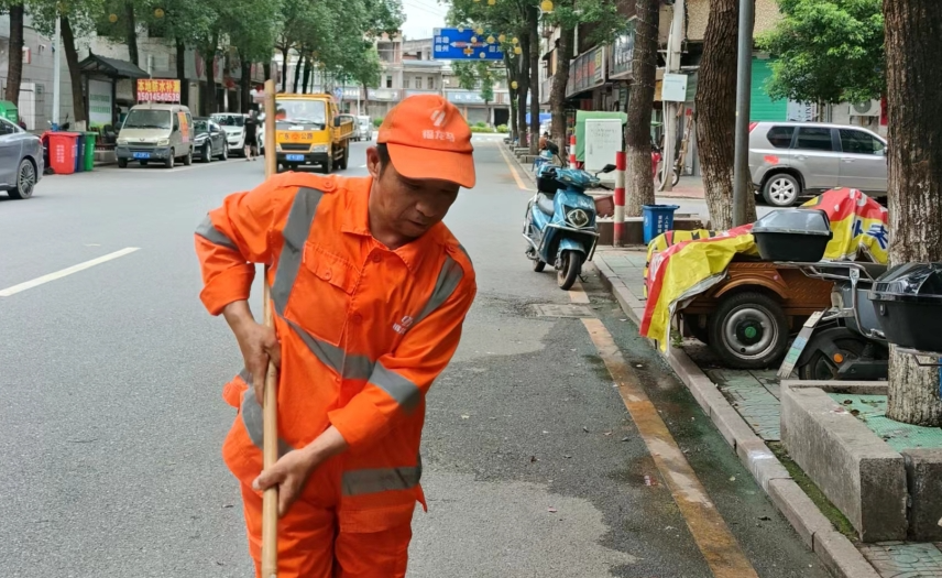 不久前,记者来到广东韶关始兴县,在马市镇上见到了捡到这笔钱的保洁员张相远,张相远和他的妻子刘凤娣身着橙色工作服,手持扫帚、垃圾铲等工具,正在清扫街道、捡拾垃圾,已经忙碌了一个上午,看似简单的动作,两口子每天都要重复上千次。