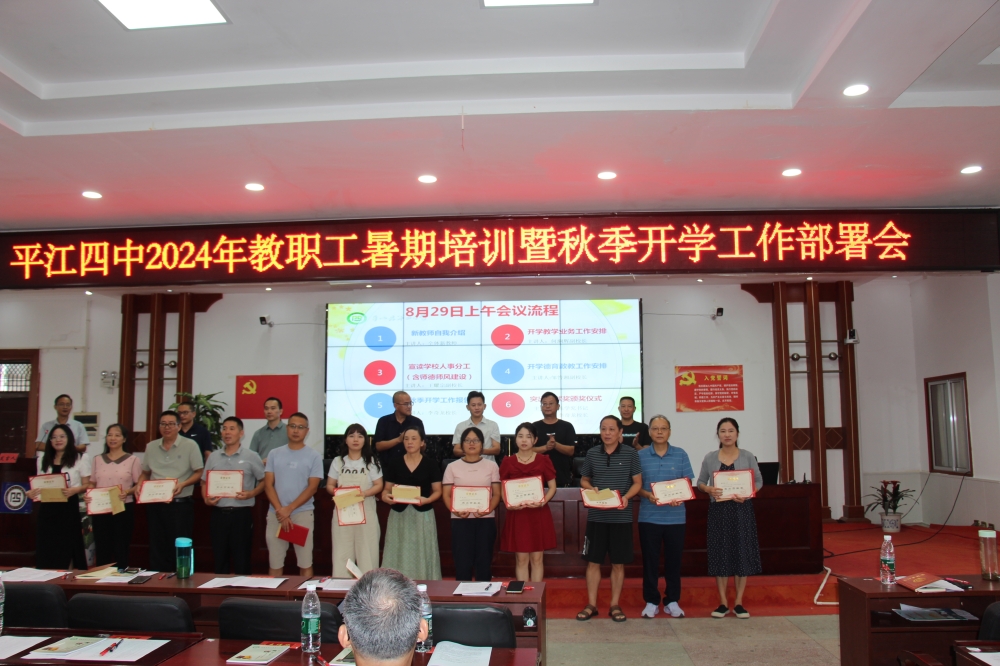 秋色渐染,一枕新凉。在这个承载收获、孕育希望的季节里,为确保新学期各项工作起好步、开好局、谋好篇,引领全体教职工以更加饱满的精神和昂扬的斗志投入到秋季学期工作中,8月29日上午,平江四中开启了为期2天的暑期教师培训班暨秋季开学工作部署大会,传达学习全县开学工作指示精神与教育教学业务校本培训,共同谋划新学期的目标定位与工作举措。
