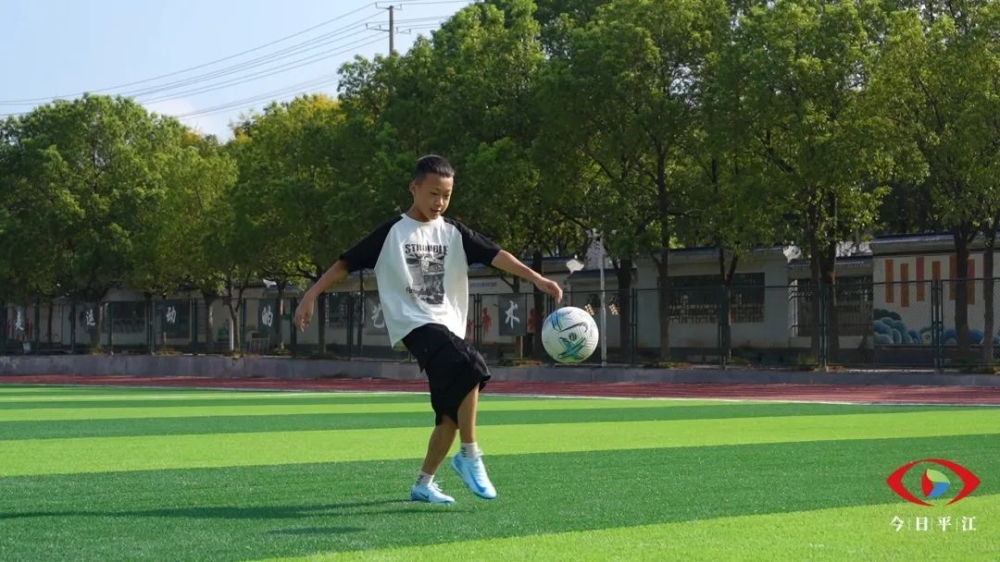 ▲报到第一天,新生在启明中学操场上踢球。
