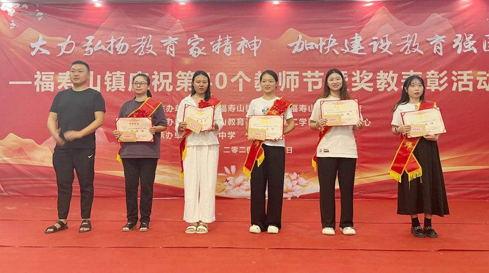 福寿山镇党委书记潘雄志对受嘉奖的优秀教师表示热烈祝贺,感谢各级各部门、全镇教职工、社会各界对该镇教育事业的支持。他建议教职工做到以下四点:要有情怀,做懂教爱教的追梦人;要守初心,做乐教善教的引路人;要长技艺,做能教会教的摆渡人;要聚合力,做重教支教的护航人。(陈秀)
