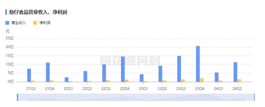 近日,劲仔食品集团股份有限公司(以下简称劲仔食品)发布2024年半年报,公司实现营收11.3亿元,同比增长22.17%,净利润增长率更是高达72.41%,延续了2021年以来的高增长态势。