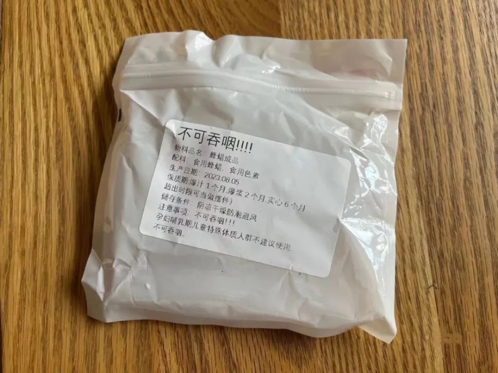 食品工程博士、科普作家云无心认为,蜂蜡是蜂产品的一种,作为常用食品原料,可以添加在蜡瓶糖中,但现在暴露的问题是,违法“三无产品”充斥市场。
