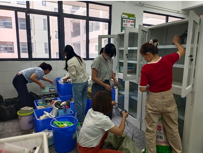 一点一滴皆用心,一角一落皆教育。为充分发挥育人环境的隐性教育作用,实验柜摆放好,该校综合组的老师们利用课余时间就忙碌着。有的忙着打扫,有的摆放仪器,有的张贴标签,大家群策群力、精心设计、紧锣密鼓地进行器材室环境创设。(陈玲 尹钢)