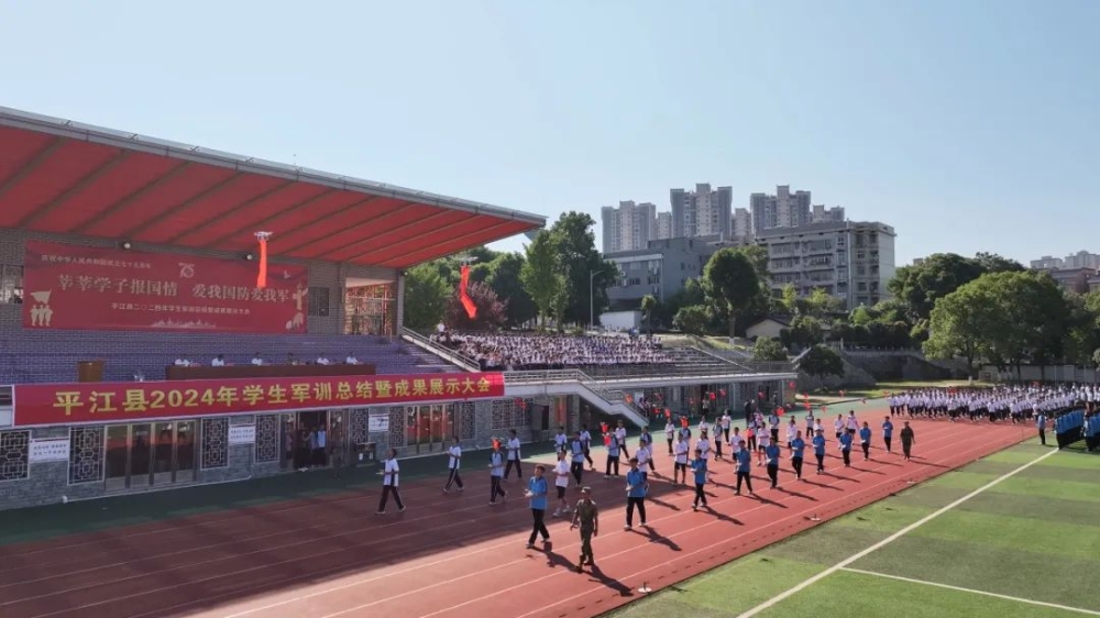 随着军训总教官铿锵有力的报告,大会正式拉开帷幕。升国旗、奏唱国歌。随后,2024级新生依次进行了军训成果汇演,尽显新时代平江学子昂扬向上的精神风貌。
