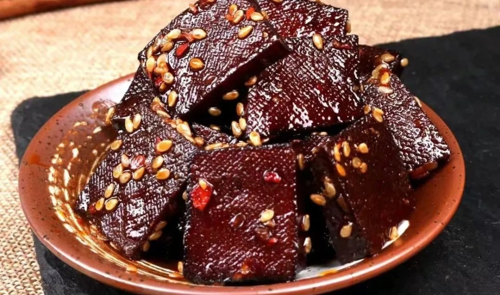 平江人爱吃豆子,一颗颗黄豆在平江好山好水的浸润下,被做成特质的豆腐干。用鸡汤、茴香、桂皮等卤制,再用炭火烘烤,就能产出方寸大小、耐嚼爽口的酱干。这是很多外地游子不能忘却的家乡味道。