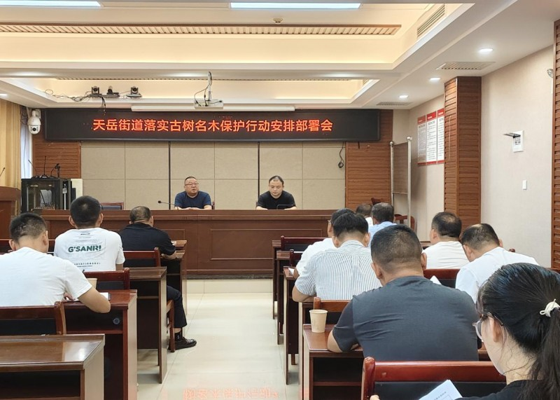 成立由天岳街道林业主管领导挂帅的工作小组,明确工作目标和管护责任,严格实行古树名木保护管理制度,按照一树一档要求,为每一棵古树名木建档制证,明确其树龄、树种、胸径、冠幅等重要信息,落实“一树一人”养护责任,签订《古树名木养护责任书》9份,明确养护责任人管护责任。