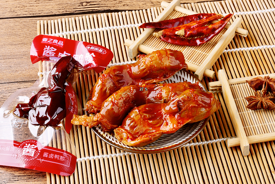 小鸭仙的老卤已经传承了四十多年。将炭火烤制过后的鸭子放入卤水中卤制,浓浓的卤汁渗透进鸭肉的每一丝肌理之中,卤香四溢,诱人无比。撕开酱板鸭的包装,浓郁的酱卤香味就已扑面而来,香味萦绕在鼻尖,不断刺激大脑,勾得人口舌生津。