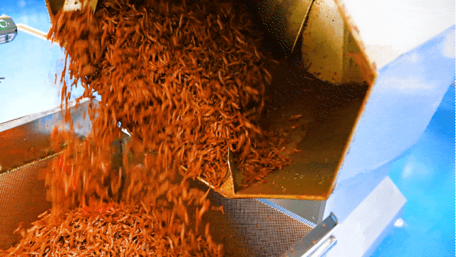 考核达标后,将进入前处理工序,再通过传送带去往下一站——卤制工段。“我”小小的身体会泡在由金乡辣椒、陇南花椒等10余种天然香料制作而成的秘制卤水中,这时的“我”,色泽饱满,焕然一新,全身都散发出浓郁的卤香。