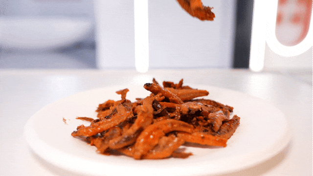 检验完成后,“我”会通过传送带进入下一站——拌料锅。这里,有几口大锅,香辣、麻辣、卤香、酱汁、糖醋……各种口味任君挑选,在拌料锅里玩转一圈后,“我”便有了新的“身份”:香辣味深海小鱼、麻辣味深海小鱼、卤香味深海小鱼……