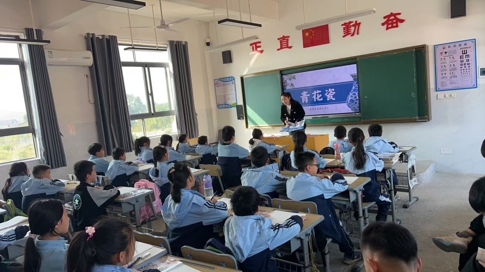 课堂上,许敏从青花瓷的历史渊源、艺术价值、色彩特征等方面娓娓道来,带领学生们走进这古老而优雅的艺术殿堂。