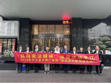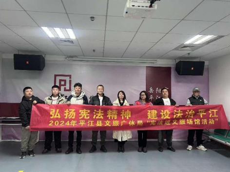 县文旅广体局设置了线下文旅普法宣传点。在县文化馆、图书馆等公共服务场所及景区、星级酒店张贴宪法宣传海报,宪法宣传周的宣传海报,以通俗易懂的方式呈现,传递着宪法精神,让更多的人了解宪法、学习宪法,增强法律意识,共同营造全民尊崇宪法、学习宪法、遵守宪法、维护宪法、运用宪法的良好氛围,共建法治平江。