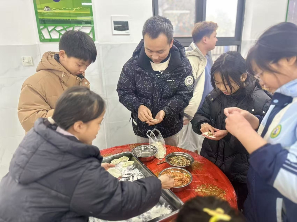 为弘扬传统饮食文化,丰富学生的校园生活,12月11日下午,金龙学校组织五年级全体学生开展了一场趣味横生的包饺子活动。在教导主任许敏、后勤主任何君海以及教师魏佳龙的悉心指导下,学生们不仅体验了动手实践的乐趣,还感受到了浓浓的节日氛围和团队合作的力量。