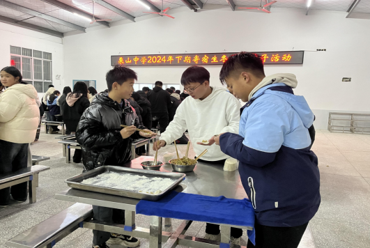 冬至不端饺子碗,冻掉耳朵没人管。12月19日晩上,伍市镇栗山中学食堂里灯火通明,所有寄宿生在老师的组织和带领下开展了包饺子的趣味实践活动。