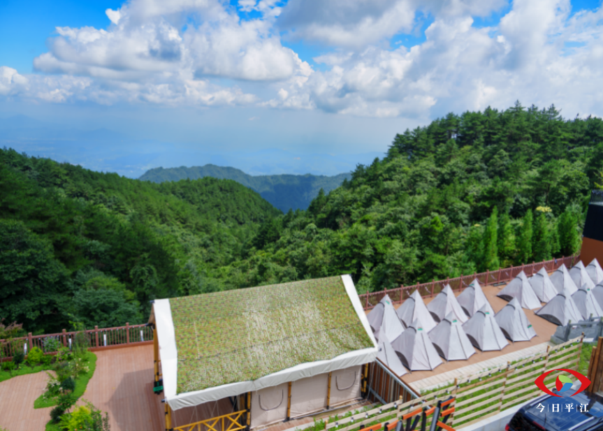 天岳·云端轻奢露营酒店是湖南首个坐落在海拔1596米之上的综合性露营酒店,位于国家AAAA级旅游景区湘鄂赣三省边界的第一高峰幕阜山中。营地在此占地面积9500平方,最大容客量350人。