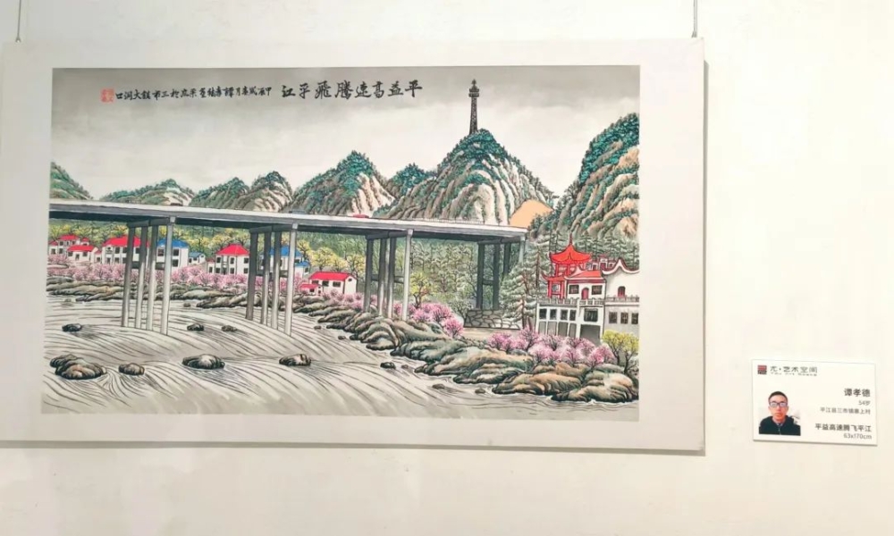 三市镇的谭孝德,是一位地地道道的农民。日复一日的田间劳作,让他对这片土地有着深厚的感情。他的画作《平益高速腾飞平江》生动展现了家乡的发展变化,介绍这幅作品时,他的脸上洋溢着自豪之情。他说:“画画也是我和土地对话的另一种方式,能用画笔记录家乡的美景和发展,这让我很快乐。”