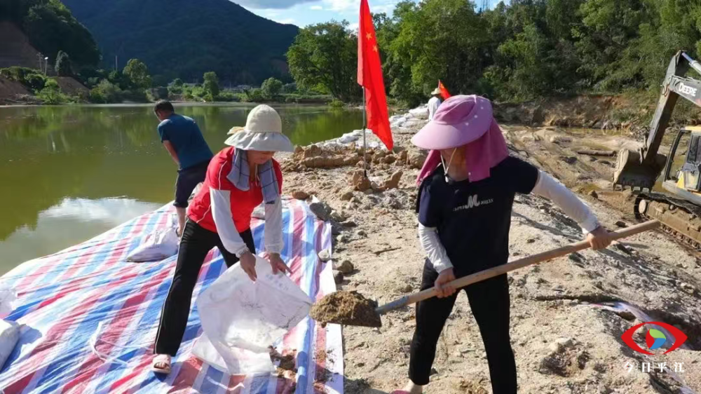 ▲7月29日现场,三市镇淡江村干群自发积极抢修被洪水冲损的大溪堰,自7月2日发现堰坝被水冲毁以来,村委会通过微信群召集村民自救,抢修过程中,每天都有二三十人自发参加。