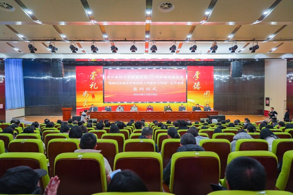 为进一步推动中医药事业的传承与创新,12月29日,贵州医科大学附属医院与县中医医院正式签约,合作共建凌湘力全国名中医传承工作室分工作站“平江站”。凌湘力教授一行,县人大常委会主任凌晓明,副县长朱远,县卫健局负责人、相关股室干部,县中医医院全体干部职工参加合作签约仪式。