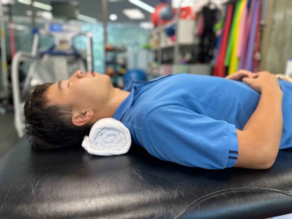 此外,枕头高度也会影响呼吸,过高或过低的枕头都可能使呼吸道受到压迫,影响呼吸的顺畅。有个比较简单的方法,将毛巾卷成自己一个或一个半拳头的高度,垫在脖子后面,对于颈椎来说就是一个非常合适的曲度。