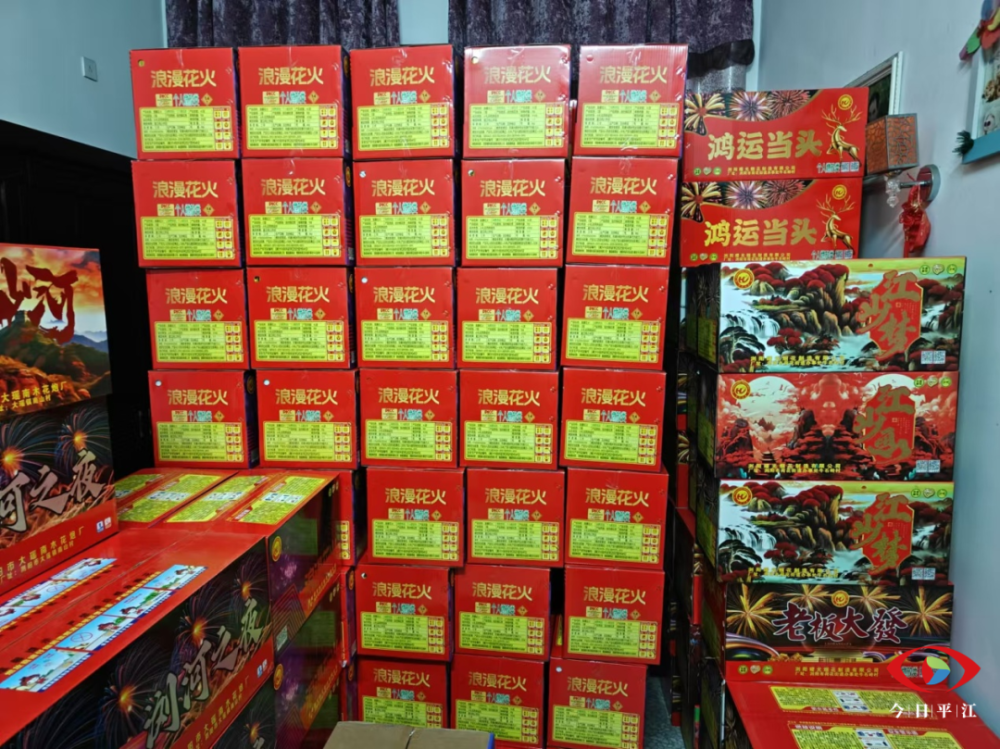 1月9日晚,长寿镇联合派出所、综合执法大队对长寿镇集镇周边开展烟花爆竹打非治违专项检查过程中,在西南街弘富四期好想玩便利店查获非法储存烟花爆竹70余件,当事人已被行政拘留。