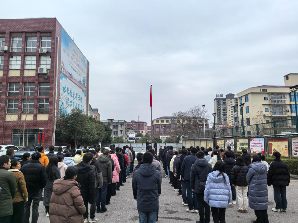 会后,全体干部职工整齐列队,一同参加了升国旗仪式。大家面向国旗,肃然伫立,用整齐嘹亮的国歌声迎接新的征程。