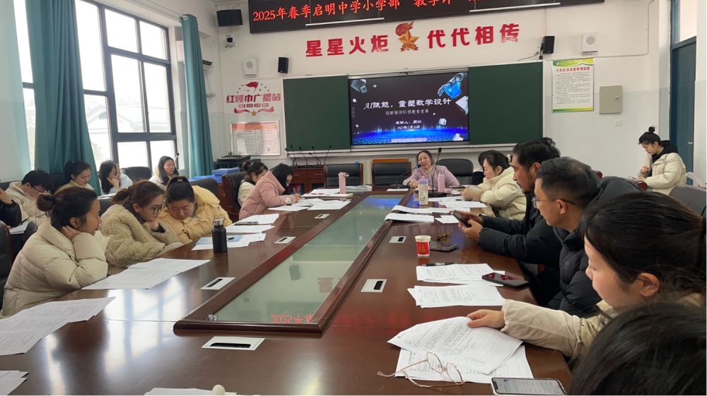 为推进人工智能技术与教育教学深度融合,提升青年教师教学设计创新能力,2025年2月26日上午第二节课,县启明中学副校长周洲以《AI赋能,重塑教学设计》为主题,面向小学部青年教师开展专题培训。此次培训旨在通过“教学评一致”教学设计模式,推动教育变革,为即将举行的校青年教师教学竞赛注入新动能。