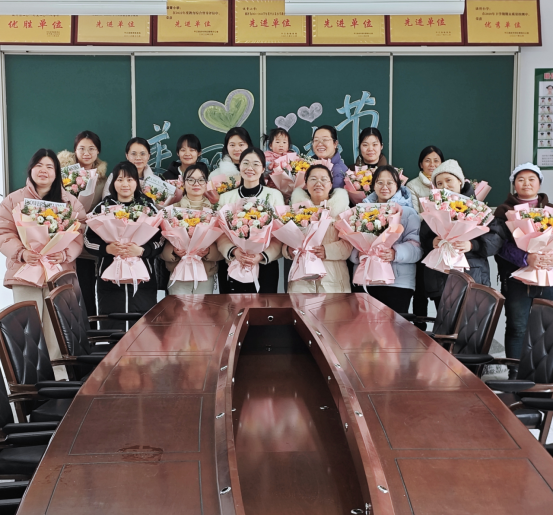 南江镇崇义小学也精心策划了一场温馨而隆重的庆祝活动,向每一位女教职工送上节日的祝福与敬意。清晨,学校负责人邹强新早早等候在校园,当女教师和女员工们踏入校园,便收到了饱含深情的鲜花和精心挑选的礼物。一朵朵盛开的鲜花,传递着对女教师们辛勤付出的感谢;一份份精致的礼物,饱含着学校的关怀与尊重。接过礼物,女教职工们的脸上洋溢着幸福的笑容,惊喜与感动之情溢于言表。