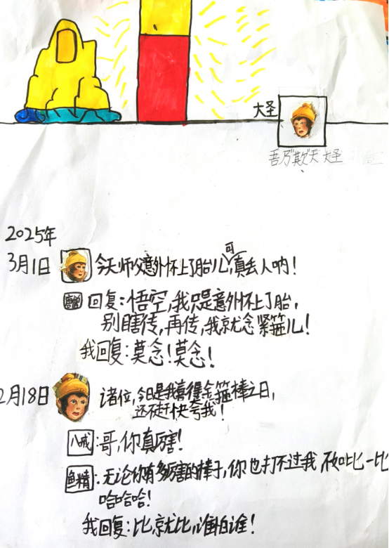 “菩提祖师在线招生,猪八戒狂炫外卖,悟空吐槽师父‘意外怀孕’!”近日,平江县梅仙镇中心小学五(1)班学生创作的《西游记》人物朋友圈火遍校园。该班语文教师将名著阅读与新媒体结合,让孩子们为经典角色设计幽默风趣的“社交动态”,让传统文化焕发新活力。