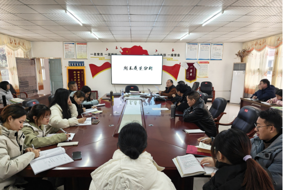 教研组成员和该校毕业班教师在会议室召开了成绩分析会,张黄龙以翔实的数据为依托,从学科优秀率、关爱率、薄弱科目等方面对毕业班全县统测成绩展开深度剖析。他强调教师要抓住提升空间,在课堂上循循善诱,让学生主动领悟知识点,努力提高优秀率。