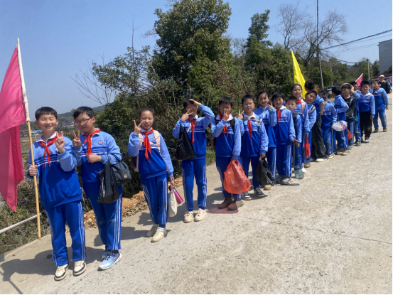 活动在庄严的中国少年先锋队队歌中开启,大家整理好物资,迈着昂扬的步伐,将“螺丝钉精神”巧妙转化为脚下的力量!一场特殊的在山水间丈量文明尺度的活动就此展开。孩子们手持垃圾袋,沿路而行丈量春光。当一个个废弃物被装入垃圾袋,当一张张笑脸上流露出更多成就感,雷锋精神在这一刻有了时代的鲜明写照。