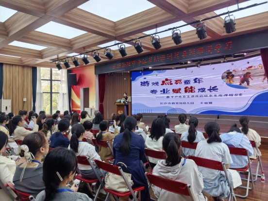 在专题分享环节,长沙市教育局幼儿园教保主任方娜带来《玩出精彩童年》,从游戏前、中、后的流程结合教师、幼儿、保育梳理了具体的行为与建议。执行园长王丽娜带来《游戏点亮童年 专业赋能成长》,基于园内户外自主游戏班本生成课程探索,从背景、实施展示了该园的做法与成果。在专家讲座中,吴峰林以音乐游戏《萨沙》点燃全场,从为什么学、怎么学、如何学,三个方面展开讲述。她借助丰富的课程案例、生动的故事、幽默风趣的语言对《幼儿园保育教育评估指南》进行了深刻解读。