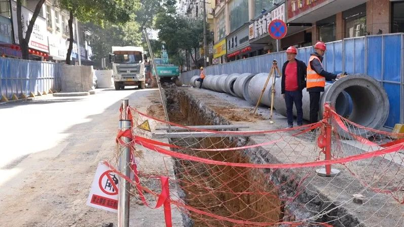 碧潭桥片区是城区常住人口较多的地区之一,部分老旧管道设计已不能满足现代城市发展需求。3月25日,记者来到该片区,只见围挡内的排污管道沟槽开挖作业正在进行,一旁待铺的管道已准备就绪。工人们对管道进行了一系列测试,确保其质量和性能达标。