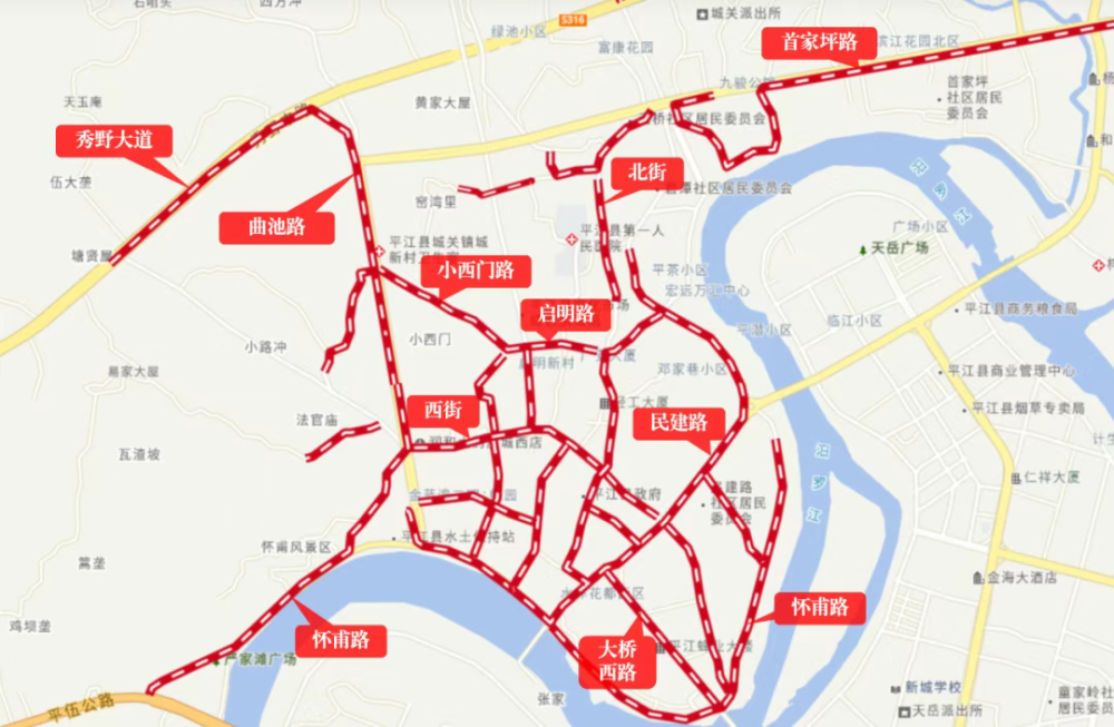 2025年3月—4月:甲山大道、坪上路、浮桥街、新村路、道子岭路、罗家垅街、民主街、车站路、体育路、鲁肃路、新联路、南街、老妇幼-十字街、怀甫路、民建北路;