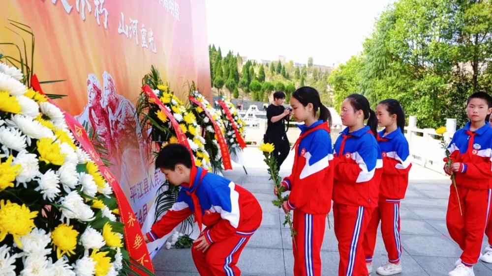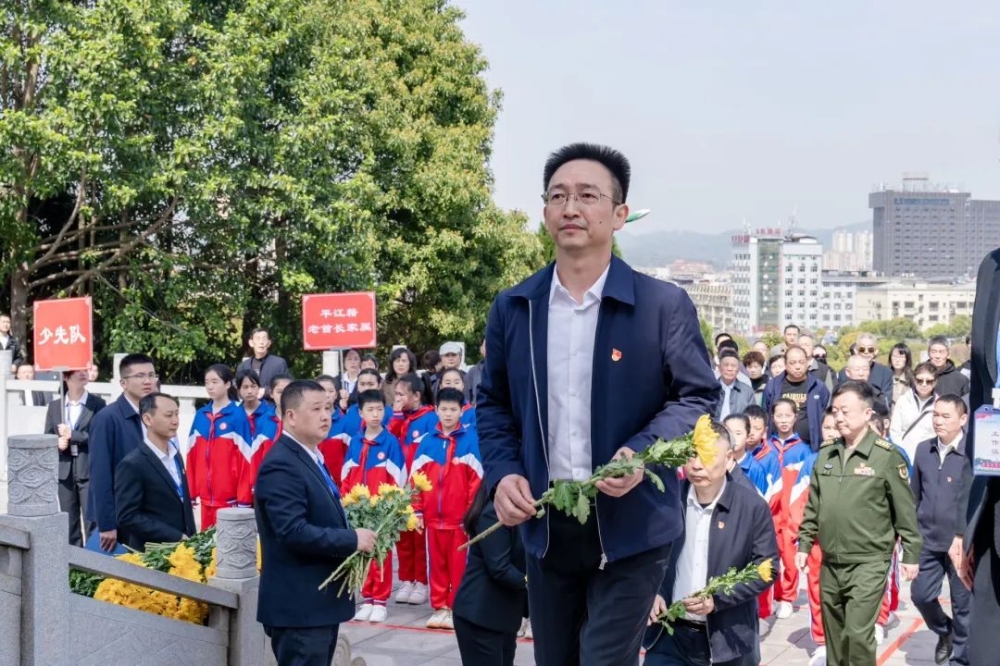 4月3日,我县在平江烈士陵园举行2025年清明节祭扫活动。老首长后代,彭方建、鲁勇、凌晓明、熊江新、武纲等县五大家领导出席活动。