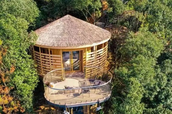 在安定镇有一家隐于山中的野奢民宿——自在平江。野于外奢于内,见山见水不见屋,一片青山绿水中,一栋栋别墅点缀其间,相映成趣,俨然一幅古朴宁静的田园画卷。