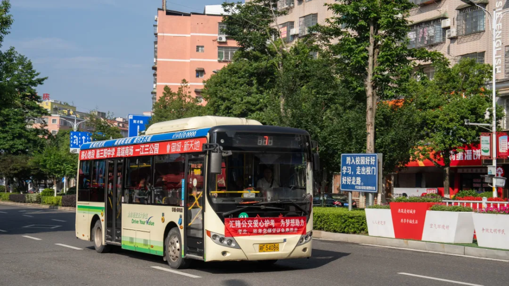早上7:30,46辆贴满祝福的送考车,20名志愿者严阵以待。公交公司同步开通“高考快线”,每辆车都备有应急文具,为学子铺就一条畅通无阻的赴考之路。